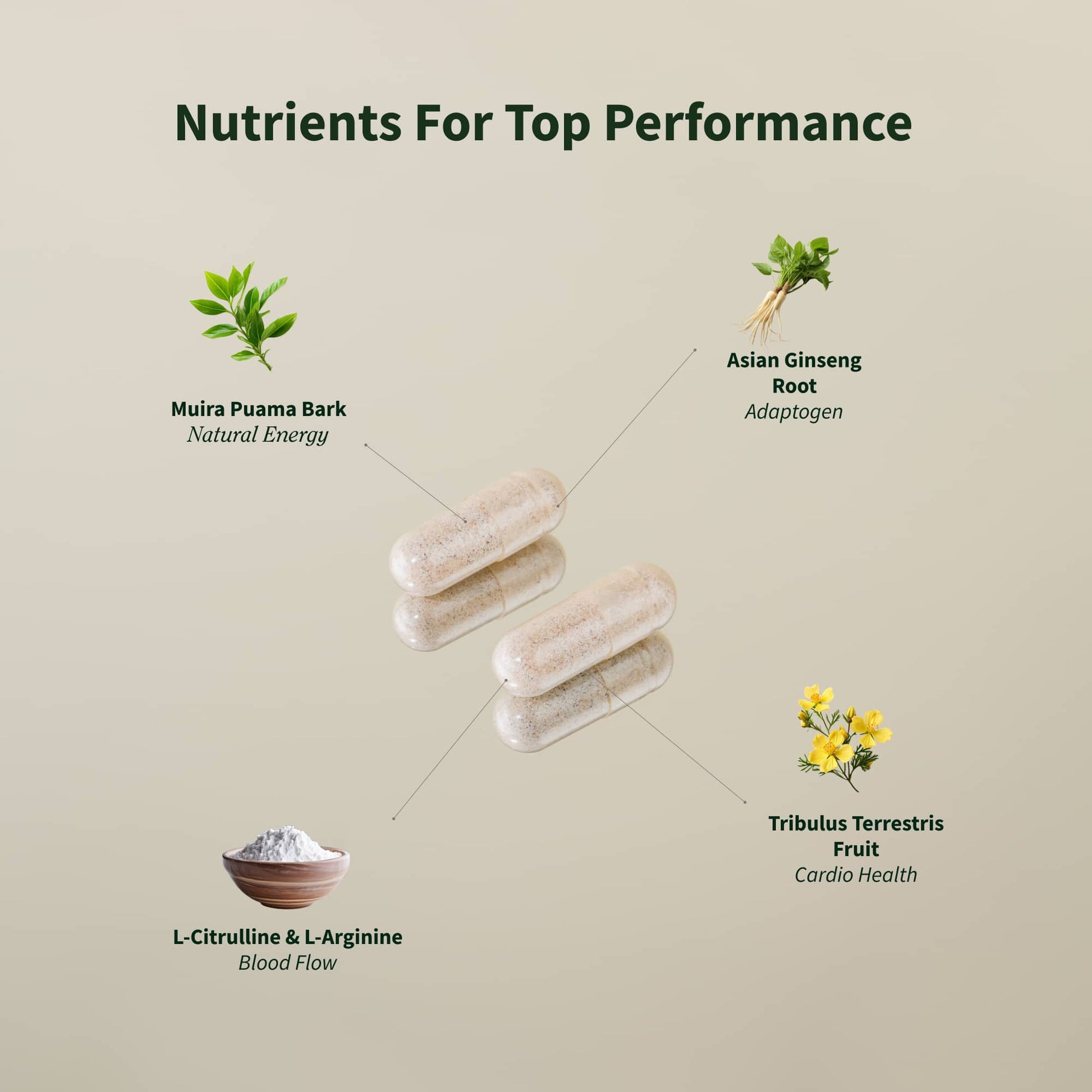 T-Booster for a foundational amino acid called D-Aspartic acid combined with 10 Earth grown plants to support natural T production.